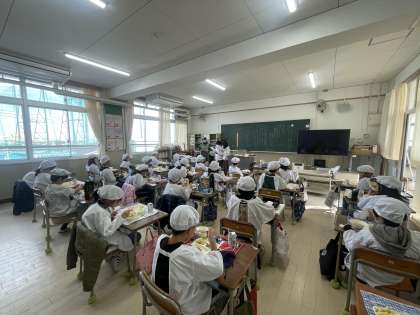 豚肉と野菜のソテーは、ソース味でピーマンが苦手な児童でも食べやすい味付けでした。