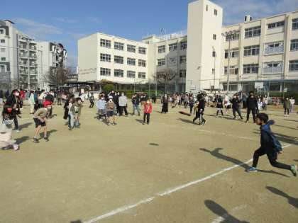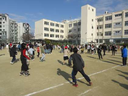 今日の試合では、低学年の児童に優しくドッチビーをゆずったり、声をかけたりしている高学年の姿もみることができ、たてわり班としてよいチームワークを築くことができていました。