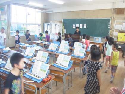 「はくにのってリズムをうとう」の単元で、鍵盤ハーモニカの音色や、子どもたちの元気な声が聞こえてきました。拍子のリズムをうまくたたけるようになりました。
