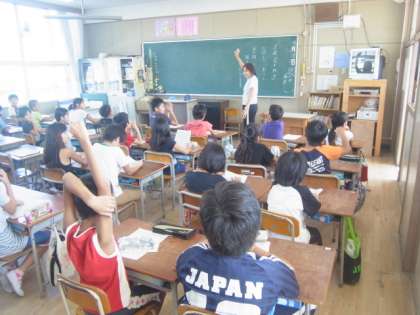 4年生は、1組が道徳の授業をしました。「《正直》五十円分」という道徳教材で、たこ焼き屋で、おつりを50円余計に受け取った兄弟が正直にお店に返しに行った話です。子どもたちは、主人公がたこ焼きを食べながらどんなことを考えたか、真剣に考えていました。「50円多かったって、正直に言おう。まるで、50円ぱくったみたいだし、でも、なんか不安だなー。やっぱそのままにしようかなー」とか、「どうしようかな。かえしにいこうかな。でも、今日はとくべつかもしれへんし、やっぱりかえしにいこう」といったことを発表しました。