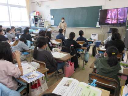5年2組は教室で道徳の学習、「緒方洪庵」をテーマに学習していました。新型コロナウイルス感染症のこともあり、天然痘の治療に尽力した緒方洪庵の功績を身近に感じているようでした。