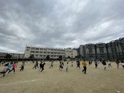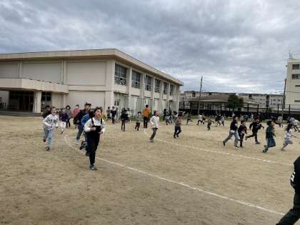 今日は、1年生と3年生と5年生が体力づくりのために元気いっぱい走りました。