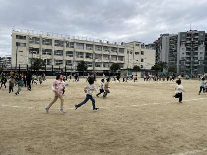 今日から15分休みに運動場でかけ足週間が始まりました。