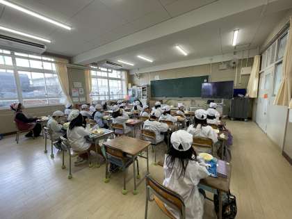 今日の給食は、豚肉と野菜のケチャップ煮・カリフラワーのピクルス・フルーツゼリー・大型コッペパン・バター・牛乳です。