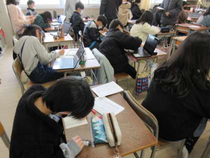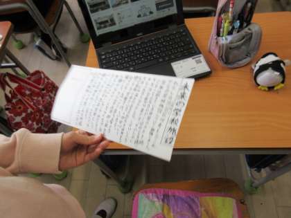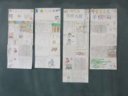 5年生は総合的な学習の時間に「総合的読解力育成プログラム」の授業として、「未来の学校について考えよう」というテーマで発表するために、発表資料をつくっていました。グループ毎につくった新聞をもとに、どんな未来の学校が提案されるか楽しみです。