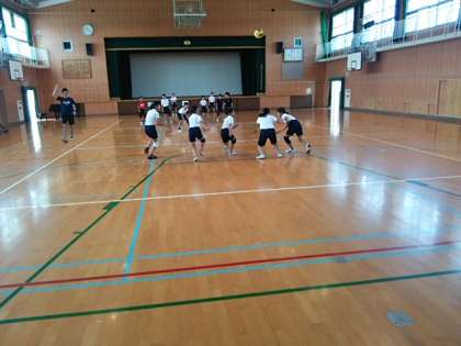 8月6日、講堂では、ドッジボールの朝練が行われていました。