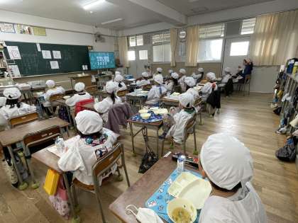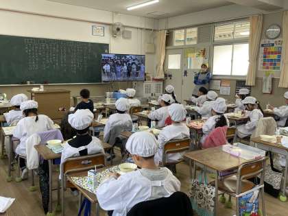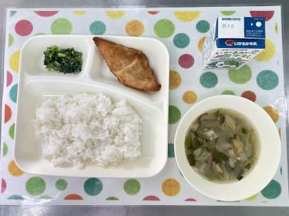 今日の献立は、たらフライ・すまし汁・こまつなのごまあえ・ごはん・牛乳です。
