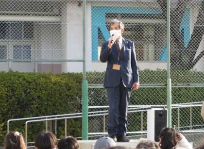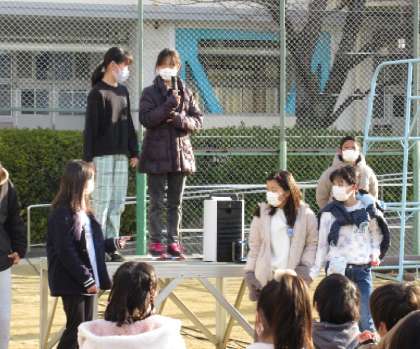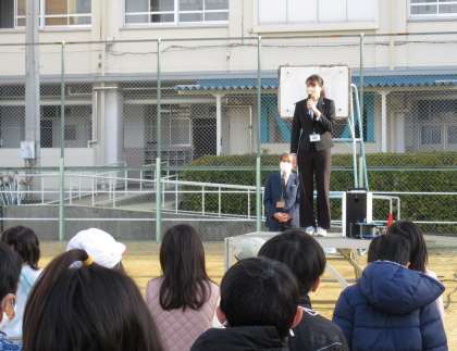 今朝の児童朝会では、初めに昨年秋に教育実習生として本校で学んだ学生さんが、支援員として本校で勤務するにあたってのあいさつがありました。その後、校長先生から校内美化について意識を高めることのについての話とがありました。その後、保健美化委員会から2月の手洗い習慣の紹介がありました。
