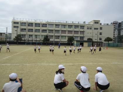 今日は、1年と4年が雨が心配される中、曇りだったので実施できました。