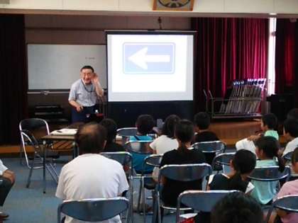 多目的室では、「学ぼう自転車の安全運転」ということで、映像を見ながら、クイズ形式で楽しく交通ルールを学びました。