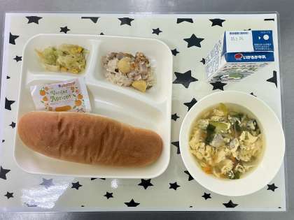 卵スープは、ふわふわの卵がたくさん入った具だくさんのスープで、たまご除去食もあり、卵がアレルギーの児童でも食べることができ、とてもおいしかったです。