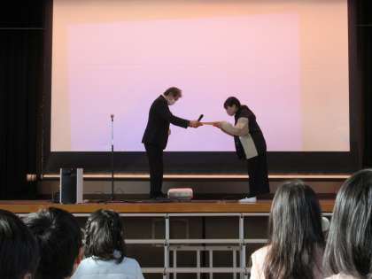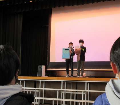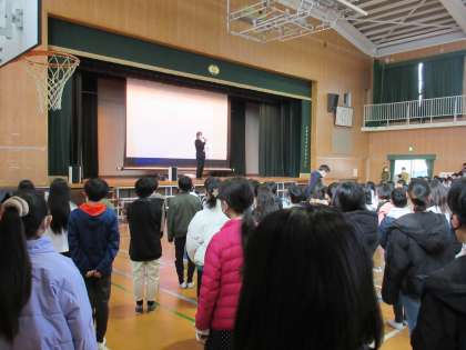 今朝の児童朝会では、初めに校長先生から、学年最後の残り一カ月を一人ひとりが自覚をもって過ごすことの大切さをについての話がありました。その後、本校が受けた「よい歯の表彰」の表彰を、児童代表の保健美化委員会の委員長が受けました。最後に、図書委員会から、今日からスタートする「読書週間」の活動紹介がありました。