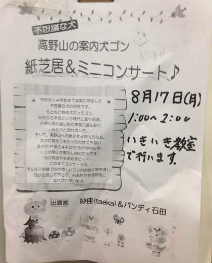 「高野山の案内犬ゴン」という実際のお話をして、その後歌と演奏がありました。