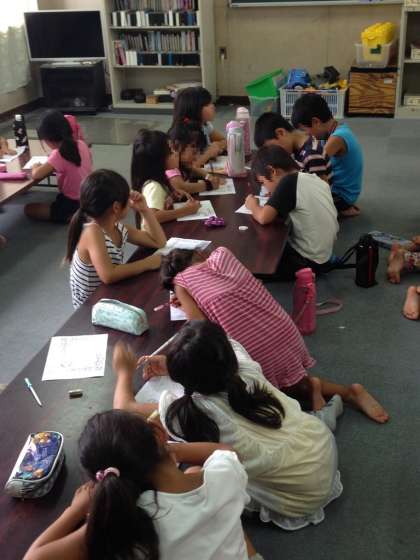 夏休みなのにたくさんの児童が集まって、観賞していました。