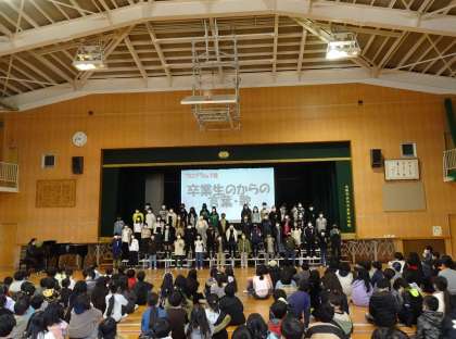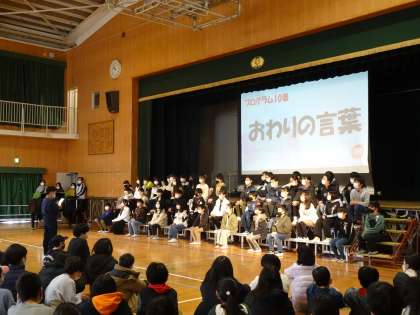 6年生はお礼として、ファンモンの「ありがとう」を歌いました。6年間の思いを込めた素晴らしい歌声を聞くことができました。