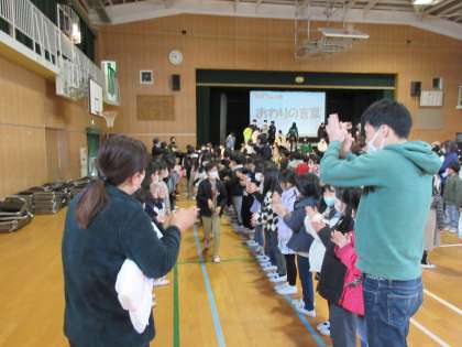 在校生代表の終わりのことばを聞いて退場する時は、それぞれの学年が作った花道をを通って退場していきました。