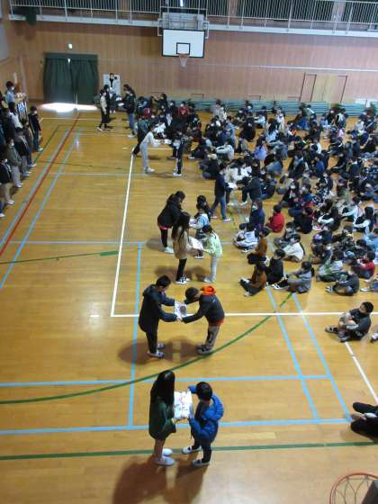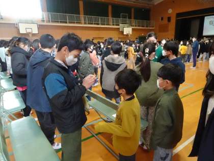 各学年がプレゼントを用意し、1〜5年生と6年生でプレゼント交換をしました。