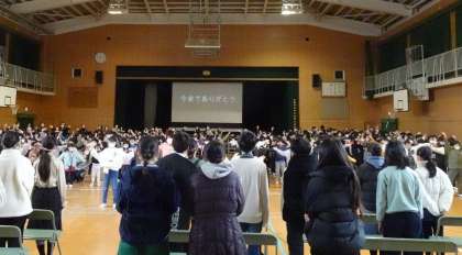 また、各学年から6年生へのことばがあり、在校生全員で、ヒゲダンの「宿命」を歌いました。今までのことやこれからもがんばれの気持ちを込めて、歌い届けました。