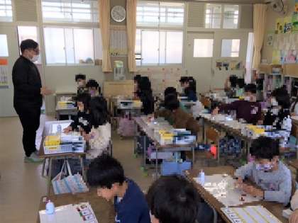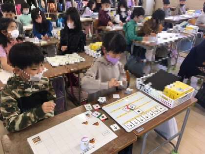 2年生はプログラミングロボットの「トゥルートゥルー」を使ってプログラミング学習をしました。