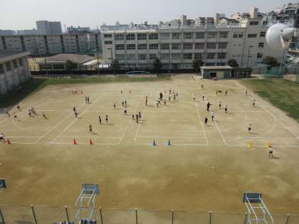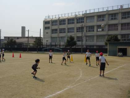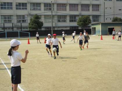 3年生は学年全員で運動場でサッカー大会をしていました。