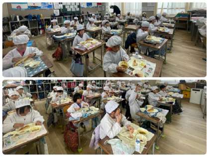 また、卒業祝い献立には、6年生の卒業をお祝いする気持ちが込められています。6年生が小学校で食べる給食も残り「あと5回」になりました。今まで食べてきた給食を思い出しながら残りの給食も味わって楽しく食べましょう。
