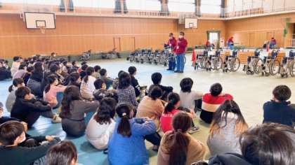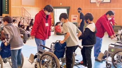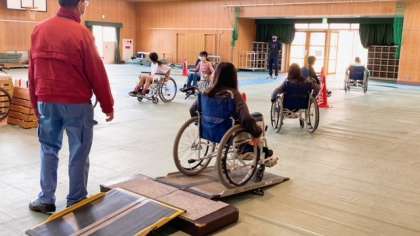 リハビリテーションセンターから講師の方が来ていただき、車いすの操作について教えていただきました。