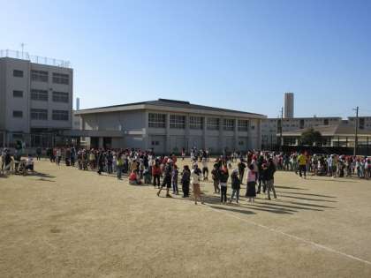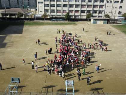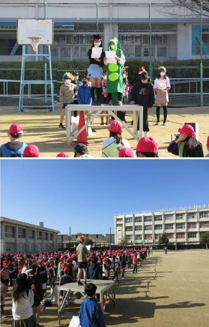 今日の集会は「〇×ゲーム」でした。集会委員がクイズを出し、運動場の〇ゾーンと×ゾーンに分かれて挑戦するゲームです。