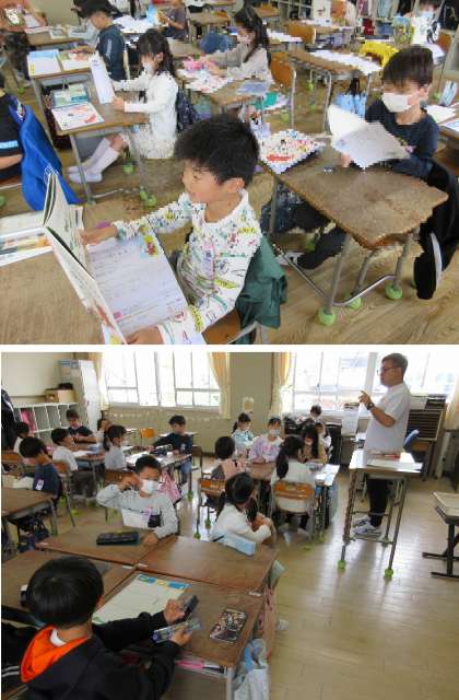 (2−1)新しい教科書や学級文庫の本を読んでいました。