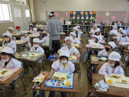 教室では、給食が配膳されるのを緊張しながら待つことができ、給食を運んでもらうと「ありがとう!」としっかり言える子も多かったです。