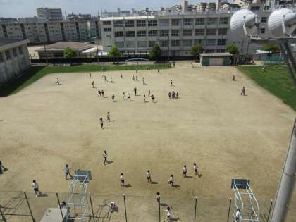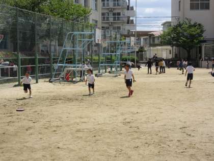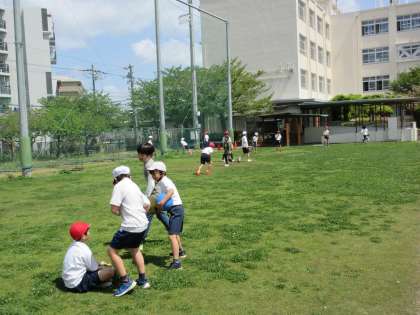 今日はとても天気が良く、休み時間にはたくさんの子どもたちがグラウンドに出て遊んでいました。
