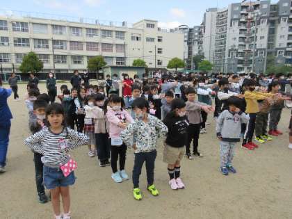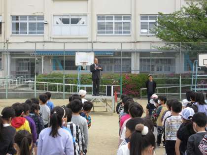 今朝は、今年度はじめての児童朝会がありました。1年生も初めての朝会を、緊張した面持ちで参加していました。校長先生からは「挑戦する勇気を持つことの大切さについて」のお話がありました。