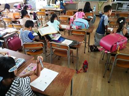 たくさんの児童が勉強をしに学習ルームに集まりました。
