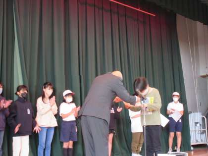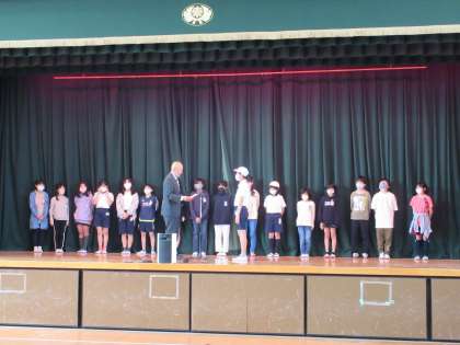 今日の児童集会の時間に、前期代表委員の認証式を行いました。