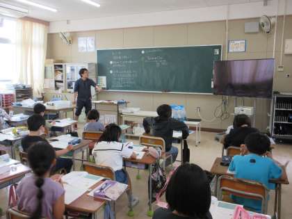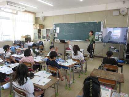 ひとつの教室で学習する子どもの人数がふだんの学級より少ないので、一人ひとりに声かけができたり全員に発表させたりすることができていました。