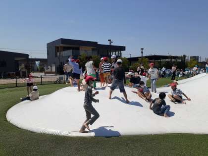その後、ふわふわドームで遊びました。小さい子がいる中でも、譲り合っている姿が見られました。けがもなく、全力で楽しんでいました。
