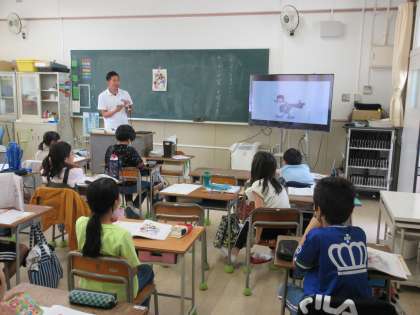 5年1組では、道徳の学習で手塚治虫が漫画家という生き方を選んだ理由について学習していました。教科書に出てきた手塚治虫のキャラクターを、Web検索を使い説明していました。