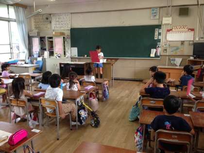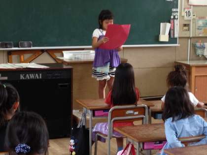 1年2組の5時間目の授業では、夏休みの日記に書いた思い出を発表しました。