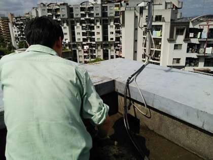 9月11日、屋上で管理作業員さんが作業していました。