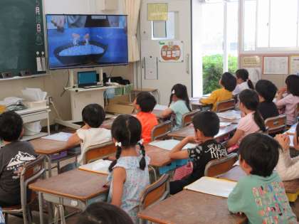 今日の朝の読み聞かせは、遠足シーズンにちなんだ絵本と昔話の2冊でした。