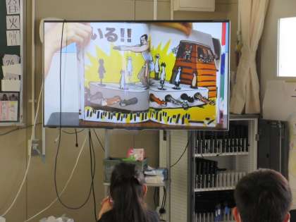子どもたちは、びっくりしたり、「そんなとこから!」と、突っ込んだりしながら楽しく絵本を聞いていました。