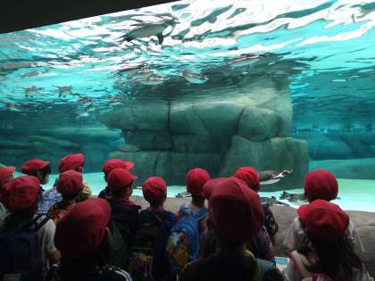 動物園では、カバやサイ、キリンなど大迫力の動物に興味津々な子どもたちでした。この春からリニューアルされた「ペンギン・アシカエリア」にも入ることができ、水中を泳ぐ動物達を見て歓声が上がっていました。