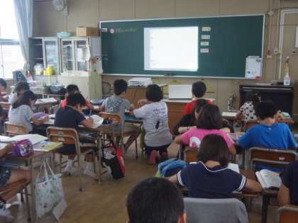 4年2組は、プロジェクターを使って、算数の授業をしていました。