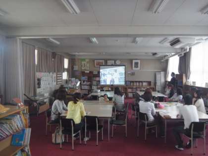 9月16日、午後2時30分から図書室において、来年度新1年生になる保護者対象の学校説明会が行われました。校長先生の挨拶のあと、学校紹介の映像を流しました。