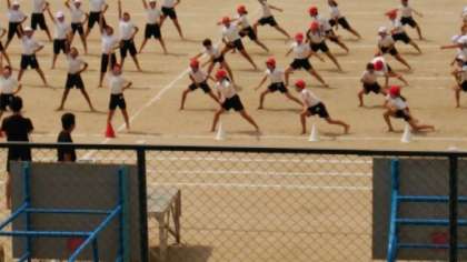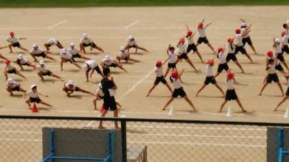 5年生の東小ソーランの練習は、学級担任の熱血指導が児童に浸透していて、動きがびしっと決まっていました。