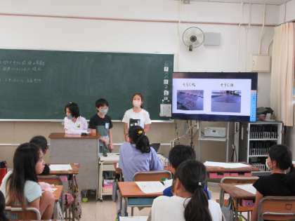 6年生の教室では、家庭科の学習で「そうじ前」と「そうじ後」の写真をもとに、そうじのコツについて発表をしていました。