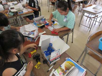 4年生は理科の学習で使う「電流のはたらき」の実験キットを組み立てていました。説明書を見ながら、みんな一生懸命です。