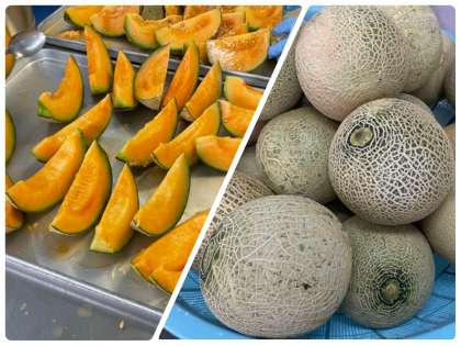 クインシーメロンは、果肉がオレンジ色の茨城県産の果汁がたっぷりの甘いメロンでした。