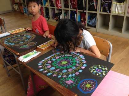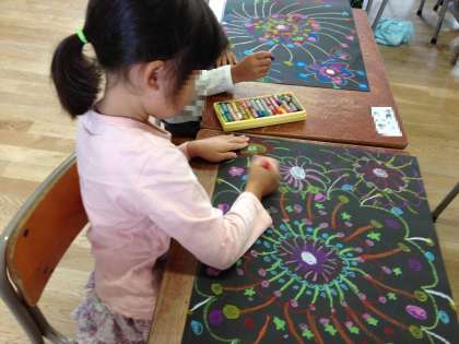 1年1組では秋の花火の作成中です。