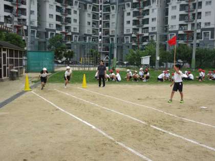 50m走のスターターやソフトボール投げの補助を児童がするなど、テスト以外でも頑張りが見られます。
