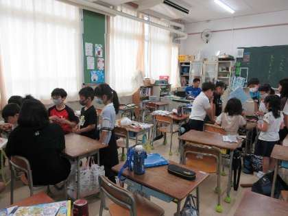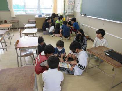今日の児童集会は、子どもフェスティバルの打ち合わせを班のみんなで行いました。